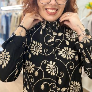 Camisa bordada negra y dorada