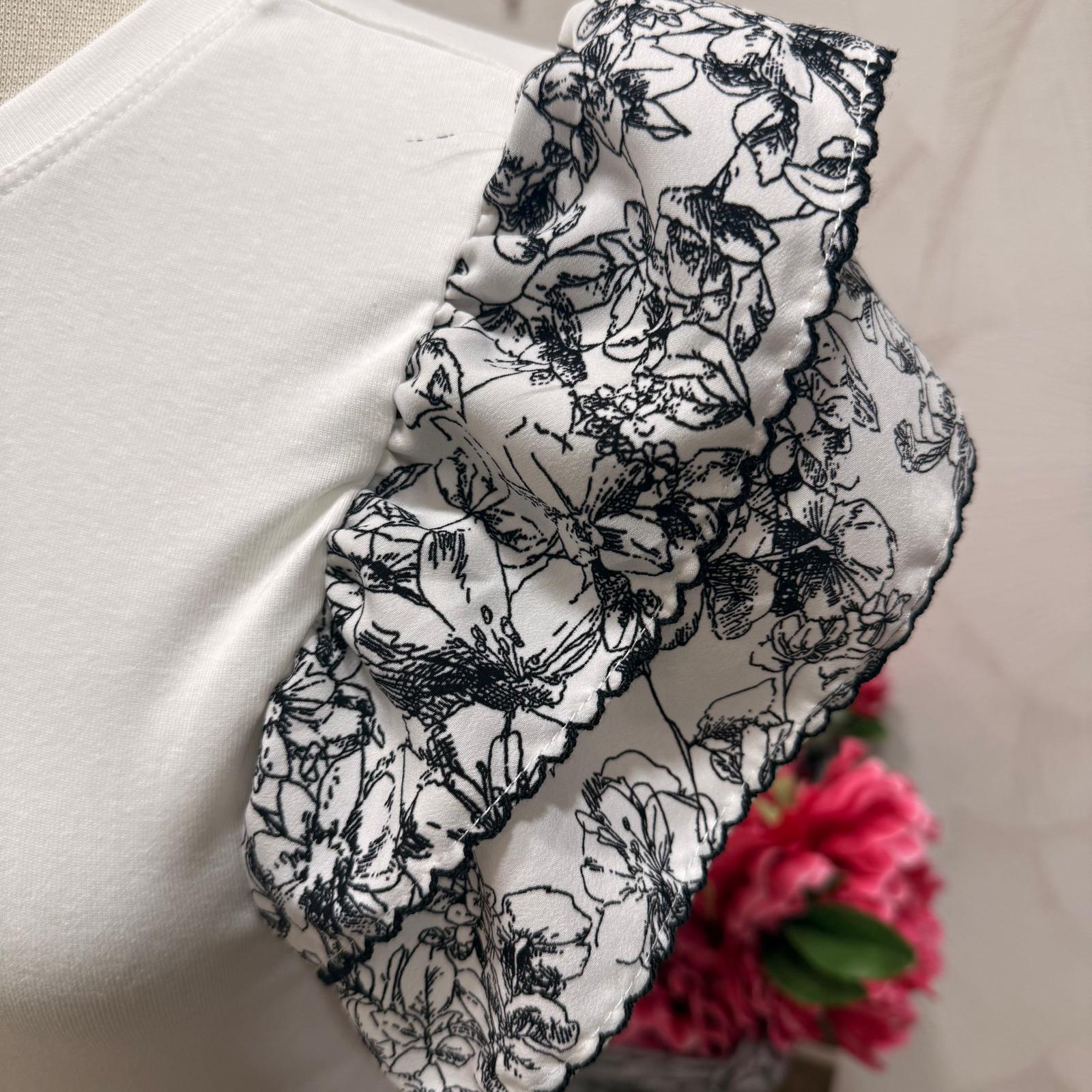- Mangas adornadas con volantes con detalles en negro.