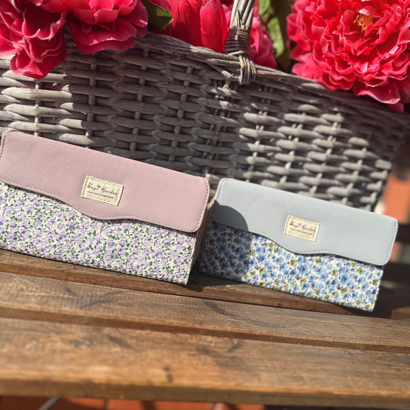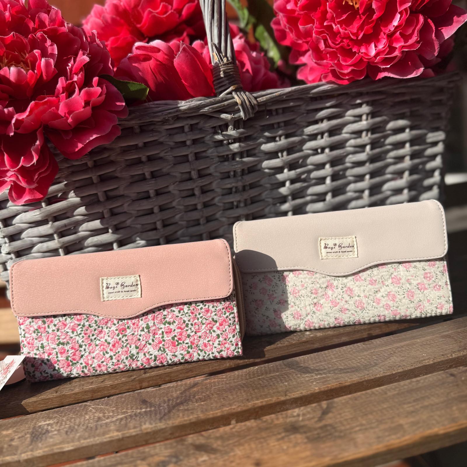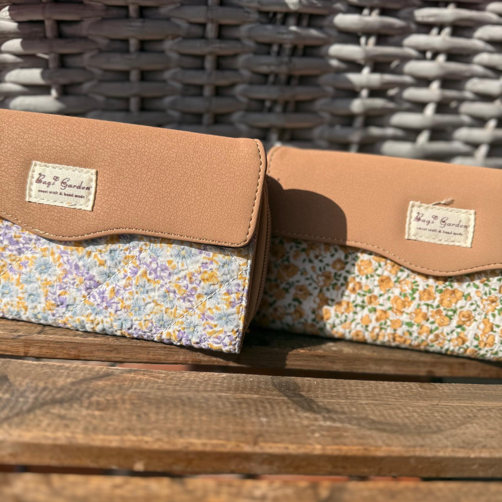Estas hermosas carteras combinan elegancia y frescura en un diseño único. Están confeccionadas con tela estampada floral en tonos suaves y románticos, acompañadas de una tapa lisa en colores pastel que les da un acabado sofisticado y moderno.