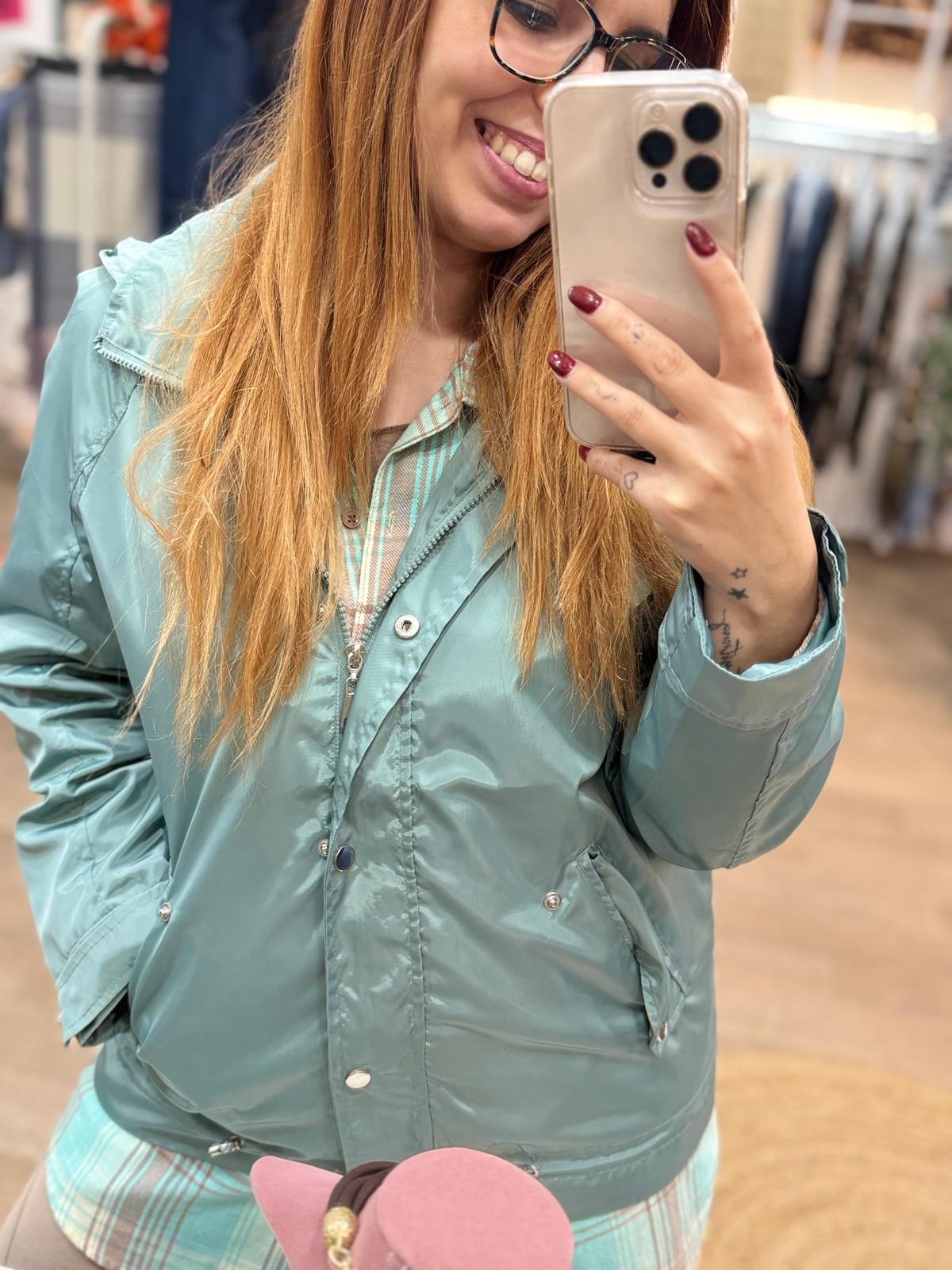 Chubasquero-cortavientos de color aguamarina.