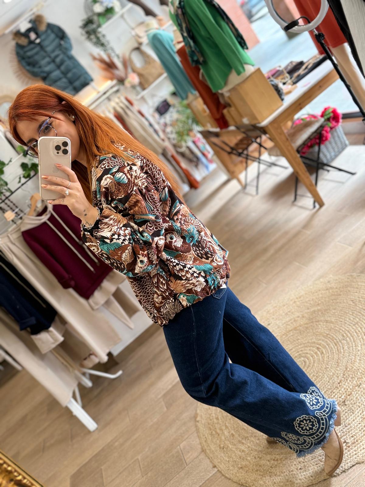 - Bordados en los bolsillos y en los bajos.