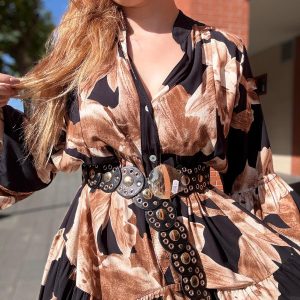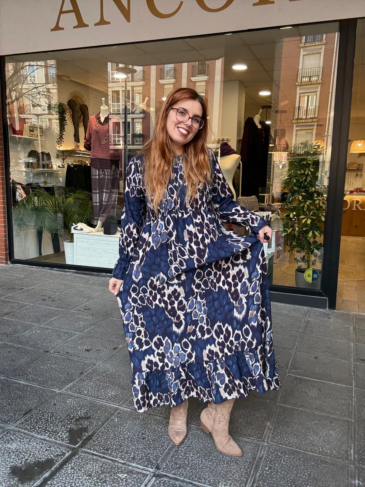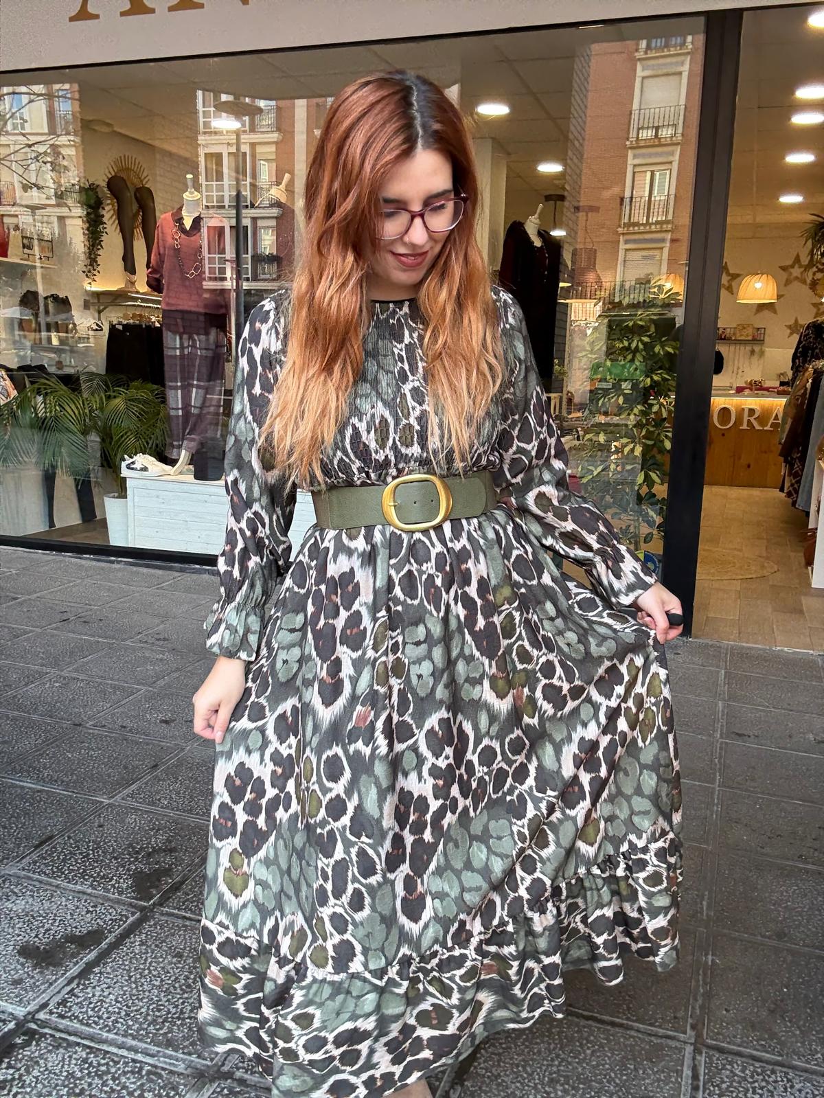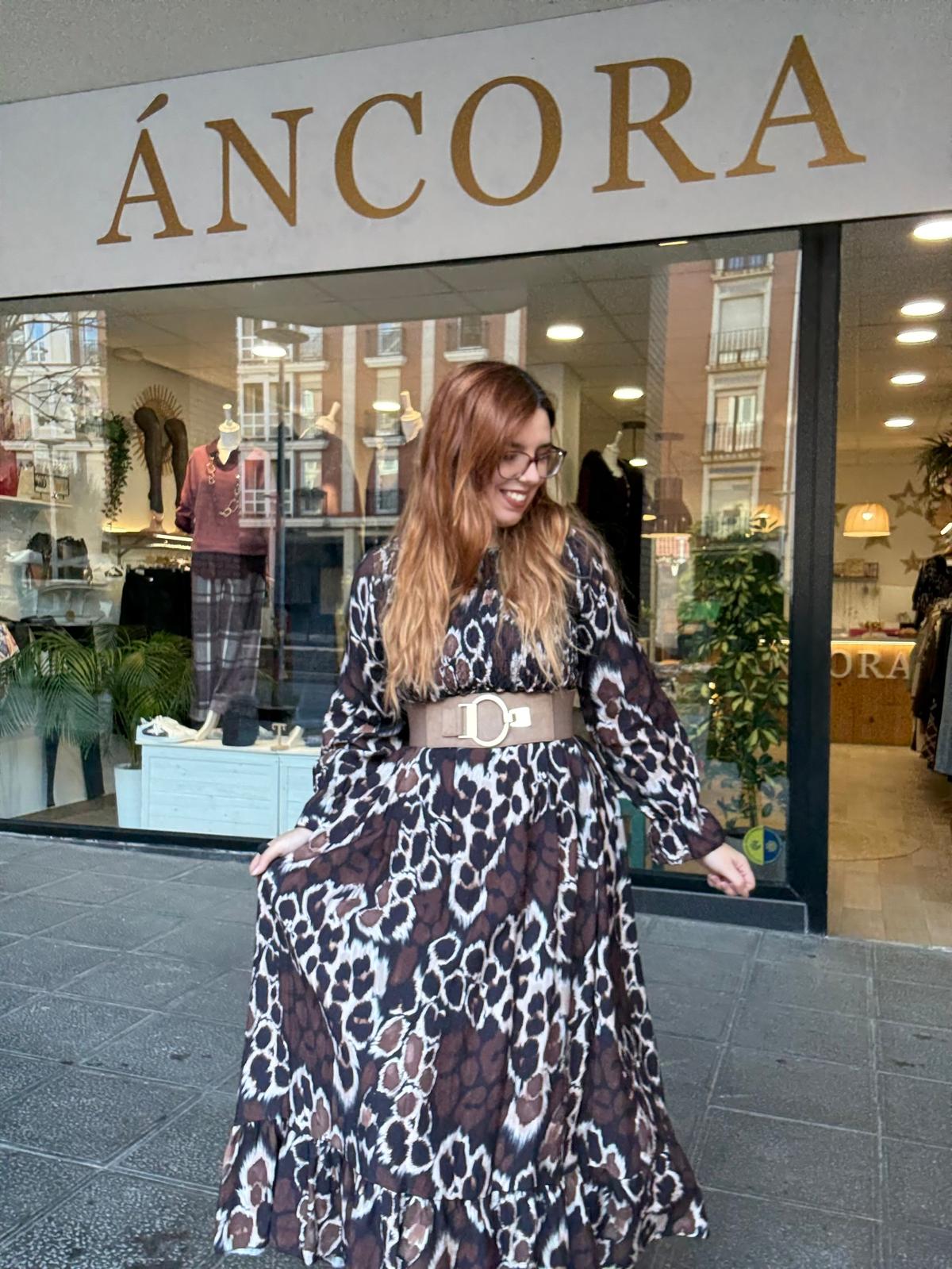 Vestido largo de leopardo en 3 tonalidades diferentes.